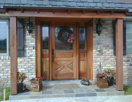 Common Cypress entry post and beam for roof structure.
