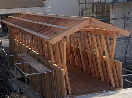 Doug Fir smooth planed beams and lumber for a walking bridge