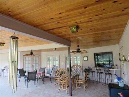 Cypress T&G porch ceiling near pool
