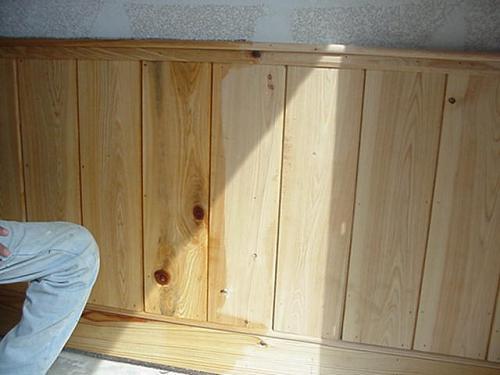 Select Cypress T&G V-Joint 1x8 applying first coat of finish